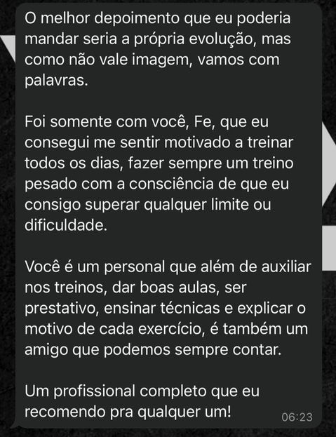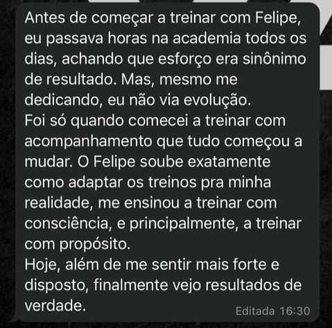 Com mais de 7 anos de experiência como personal trainer e formação sólida em Educação Física, Felipe já ajudou mais de 2 mil alunos a conquistarem resultados reais — unindo saúde, estética e autoestima.